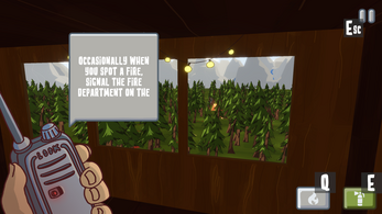 Lookout is a game about watching out for forest fires, managing, and reporting said fires. Your daily tasks consist of reporting sudden fires, signaling the fire department on where to go to stop the fire and enjoying the view.